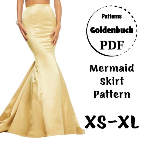 Xs Xl Fishtail Skirt With Train Pdf Sewing Pattern Wedding Etsy
